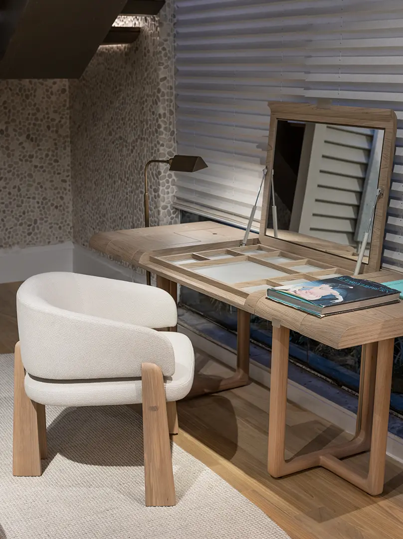 "A sinfonia musical vem traduzida nos devaneios das curvas de um braço, na doçura das formas de um assento, no acolhimento que o móvel proporciona. São peças super funcionais, de uso flexível, mas que também funcionam como componentes artísticos/estéticos no espaço que ocupam."