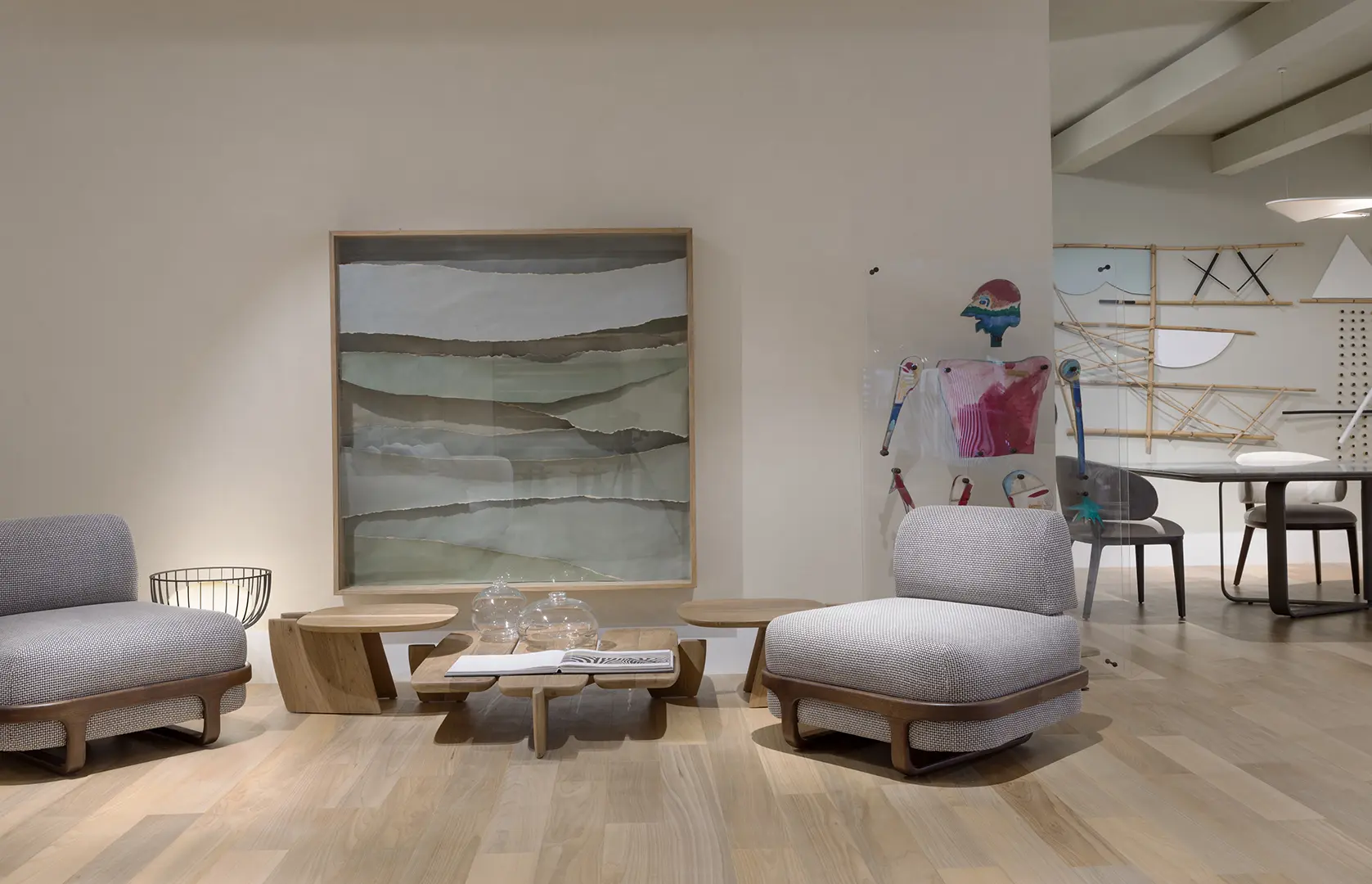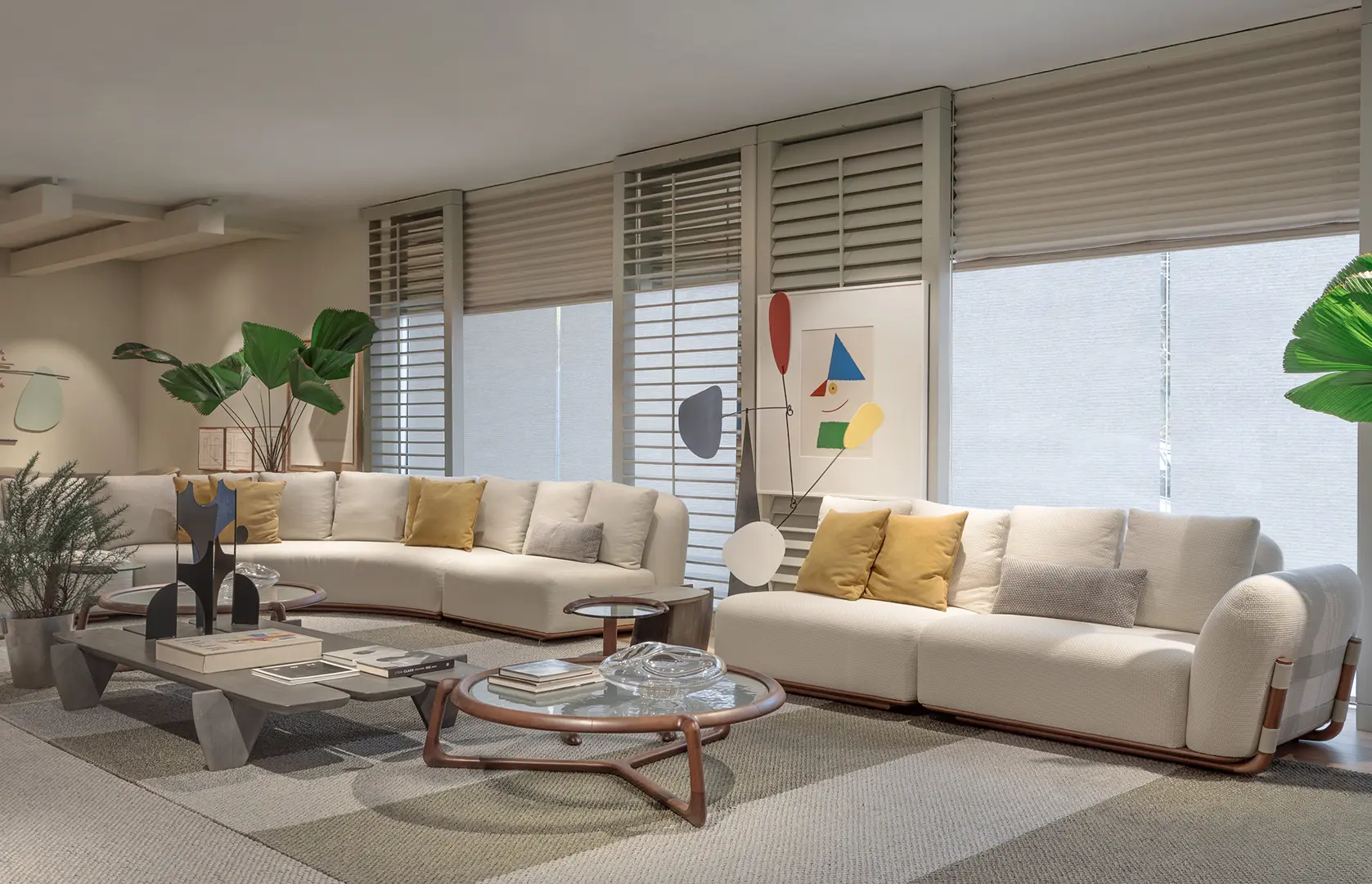 "A sinfonia musical vem traduzida nos devaneios das curvas de um braço, na doçura das formas de um assento, no acolhimento que o móvel proporciona. São peças super funcionais, de uso flexível, mas que também funcionam como componentes artísticos/estéticos no espaço que ocupam."